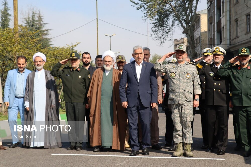 مراسم بزرگداشت روز ارتش در رشت با حضور جمعی از مقامات محلی و فرماندهان نیروهای نظامی و انتظامی در حال برگزاری است.